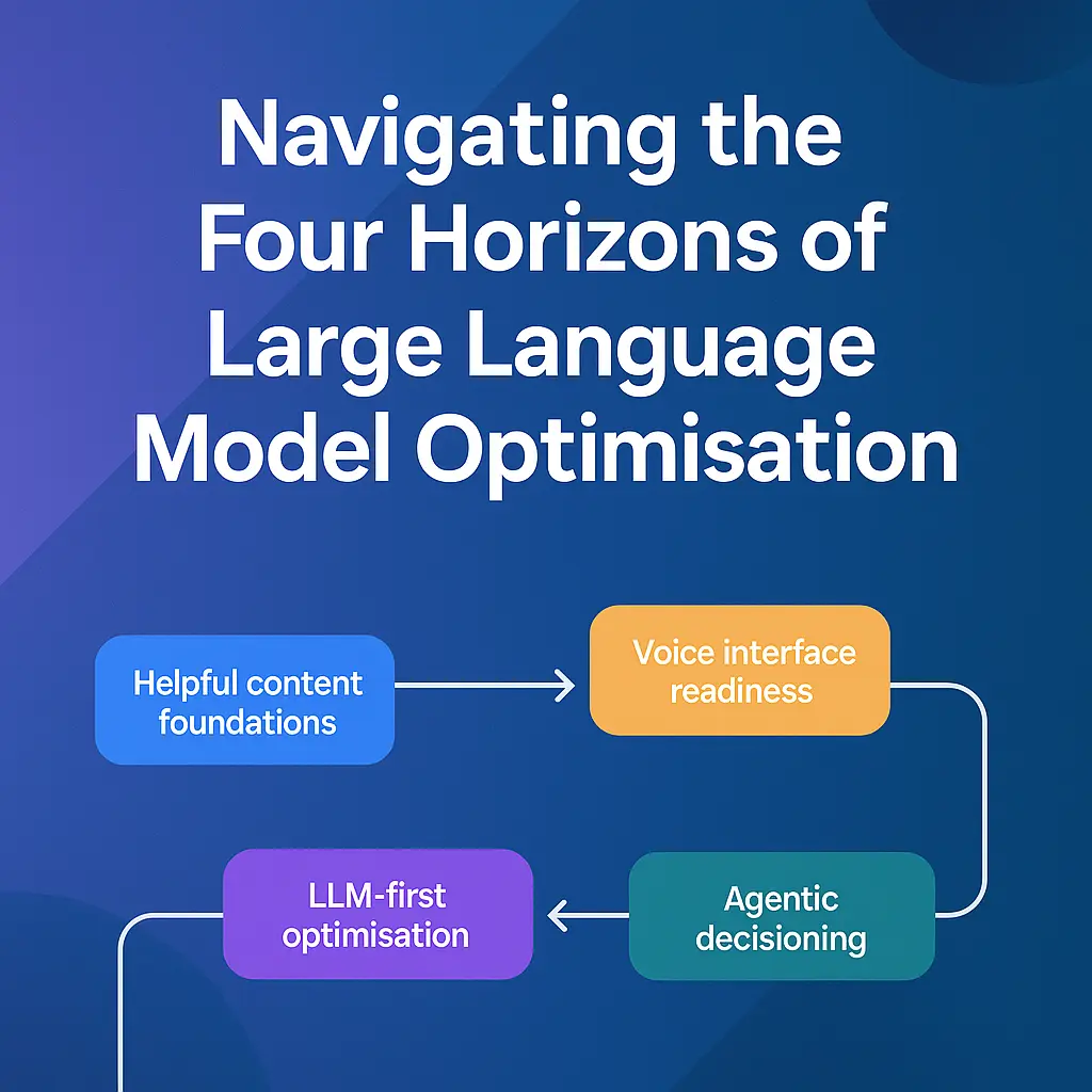 Discover LLMO, the evolution of SEO, and navigate the four horizons to future-proof your brand in the AI era. Learn to optimise for AI models, voice assistants, and agents.